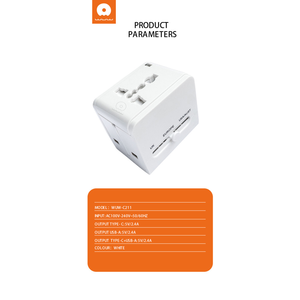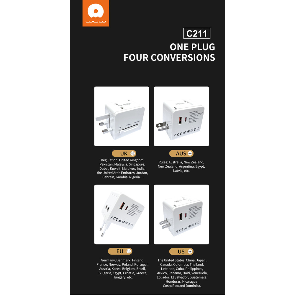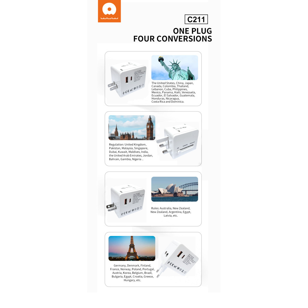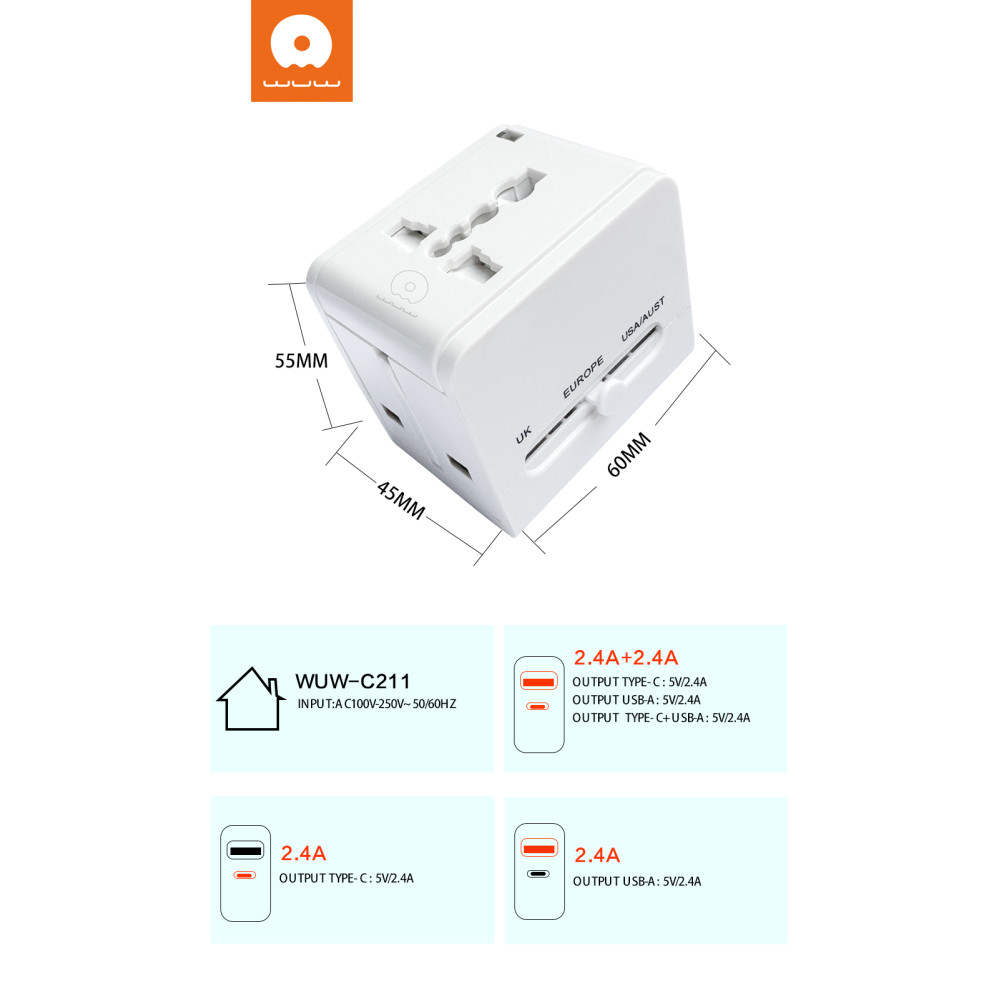 Мультифункціональний мережевий адаптер WUW C211 2.4А