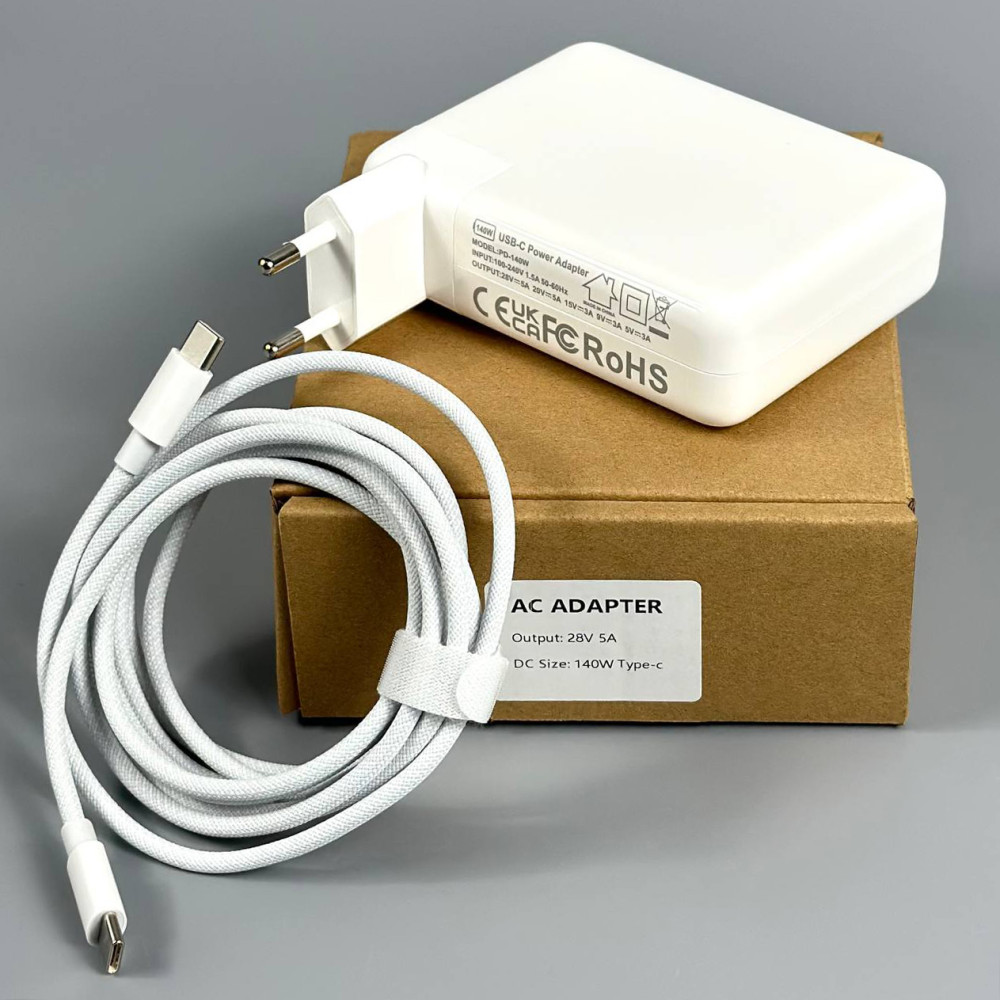 Мережевий зарядний пристрій для ноутбука 140W, 28V, 5A Type-C to Type-C плетений 2m